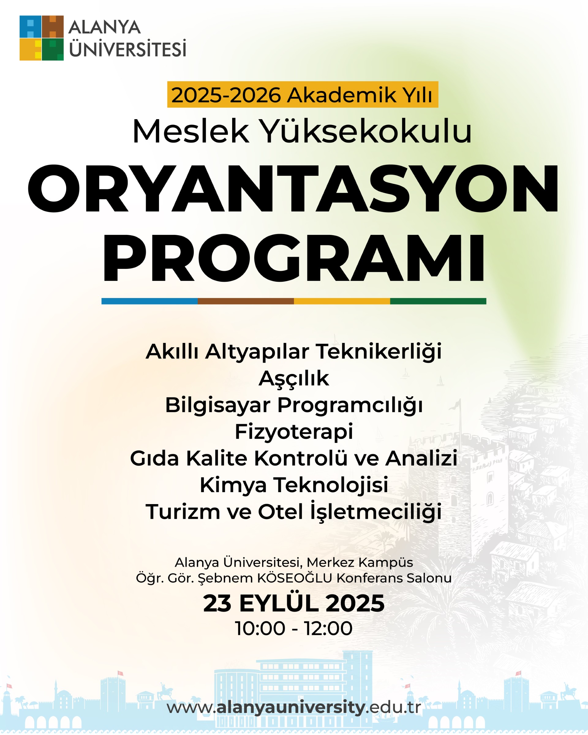 Alanya Üniversitesi Meslek Yüksekokulu Turizm ve Otel İşletmeciliği Programı, sektörün ihtiyaçları doğrultusunda yapılandırılmış müfredatı ve uygulamalı, katılımcı ders içerikleri ile öğrencilerine teorik bilginin yanı sıra pratik deneyim de kazandırmaktadır. Program kapsamında sektör temsilcileri ile doğrudan etkileşim imkânı sağlanarak, mezunların iş dünyasına hazır ve donanımlı bireyler olarak yetişmeleri hedeflenmektedir. Bununla birlikte, ilgili alanlarla uyumlu ders planı sayesinde öğrenciler, ön lisans eğitimlerini tamamladıktan sonra Turizm İşletmeciliği, Gastronomi ve Mutfak Sanatları ile İşletme gibi lisans programlarına dikey geçiş yapma fırsatına da sahip olmaktadır.